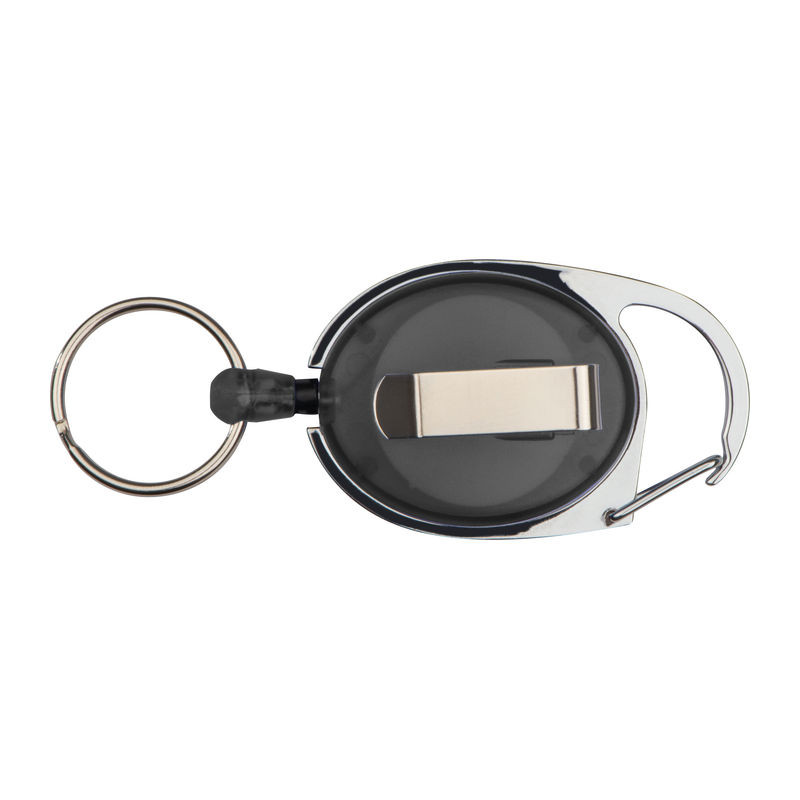 Műanyag kulcstartó vagy síbérlettartó egy kis karabinerrel, övcsipesszel, és egy kihúzható kulcskarikával. Ideális pass tartóhoz, belépőjegyek, látogatói kitűzők bemutatásához.