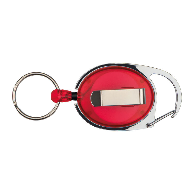 Műanyag kulcstartó vagy síbérlettartó egy kis karabinerrel, övcsipesszel, és egy kihúzható kulcskarikával. Ideális pass tartóhoz, belépőjegyek, látogatói kitűzők bemutatásához.
