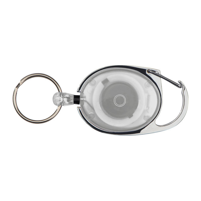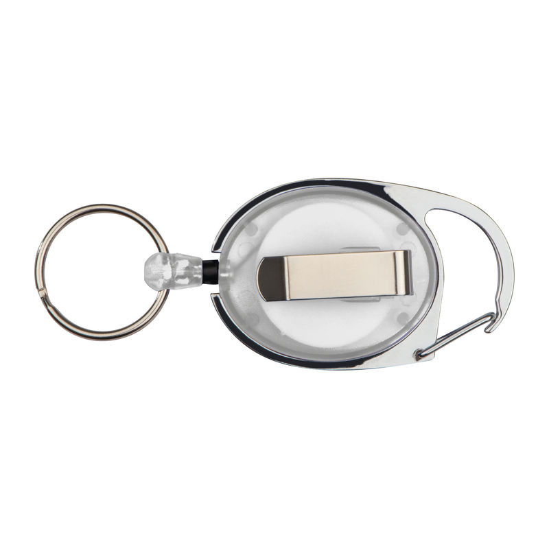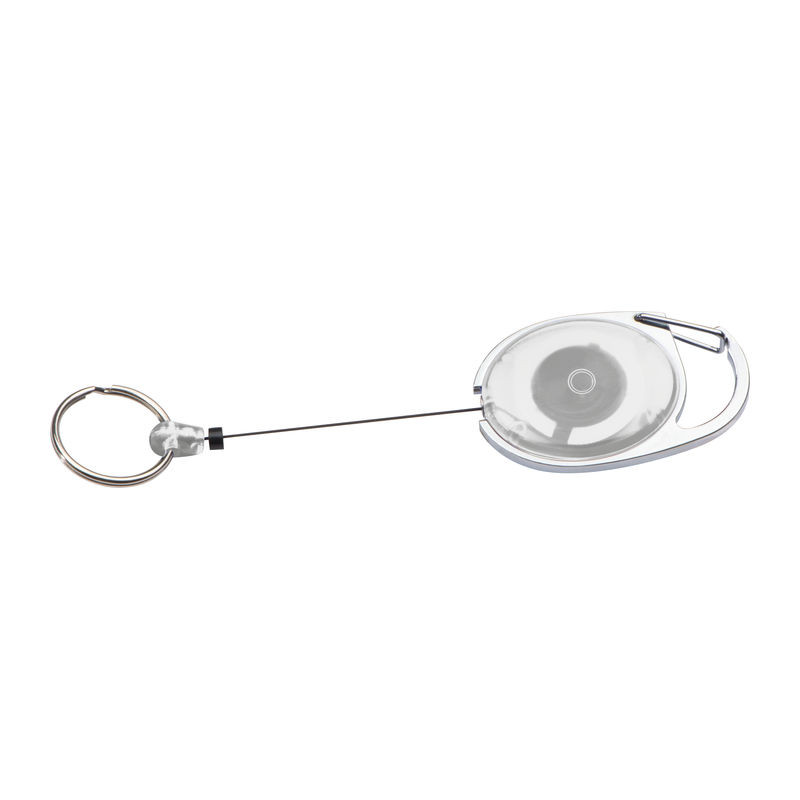 Műanyag kulcstartó vagy síbérlettartó egy kis karabinerrel, övcsipesszel, és egy kihúzható kulcskarikával. Ideális pass tartóhoz, belépőjegyek, látogatói kitűzők bemutatásához.