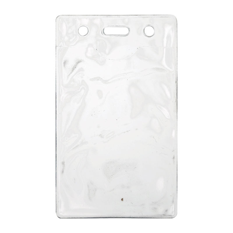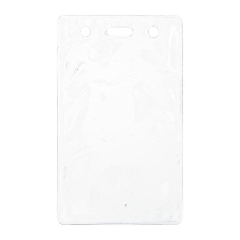 Átlátszó PVC anyagból készült álló kártyatartó, nyakpántra akasztható, belső mérete: 8,5 x 6,9 cm.