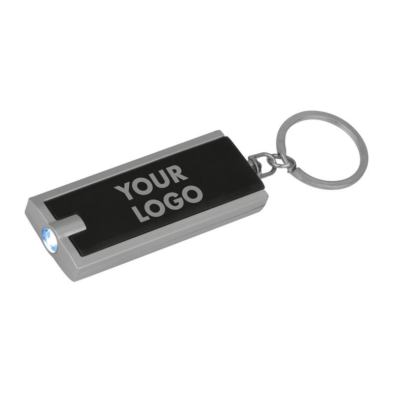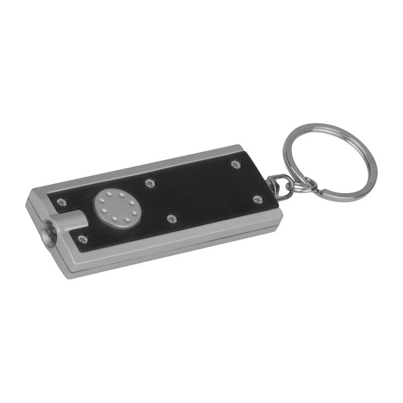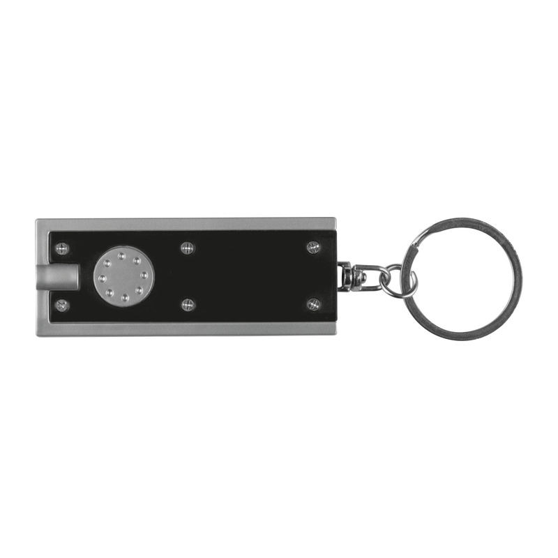 LED lámpás téglalap alakú kulcstartó, fehér fénnyel. Segítségével könnyen betalálhat a kulcslyukba sötétben is.