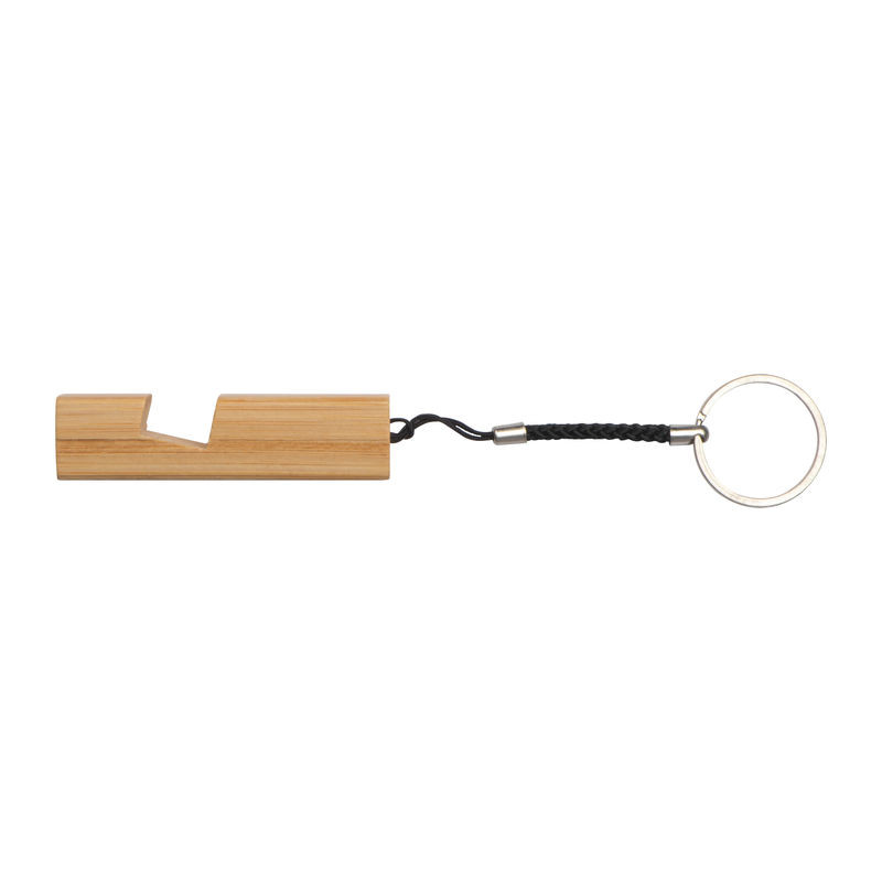 Bambuszból készült kulcstartó, mely mobiltelefon tartóként is használható.