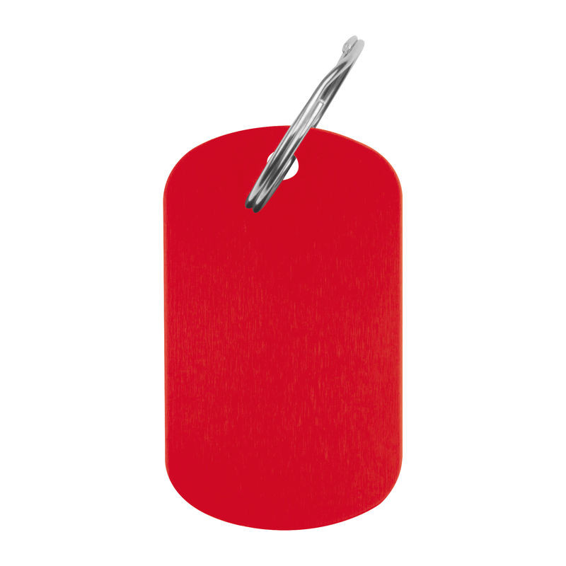 Stílusos kulcstartó újrahasznosított alumíniumból, divatos azonosító jellegű fémlemezzel.