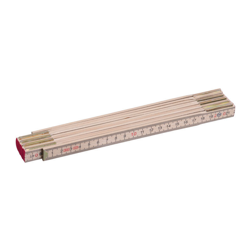 Fából készült összecsukható vonalzó integrált szögmérővel, centiméter beosztással, csukott állapotban 23,7 cm, összesen 2 m hosszú. Tartós, pontos, kézműves, műhelyi vagy háztartási használatra.