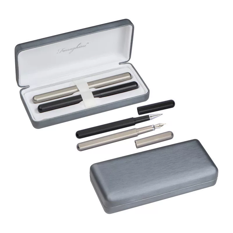 Ferraghini toll szett, amely egy golyós- és alumínium töltőtollból áll. A készlethez egy hozzáillő tok is tartozik.