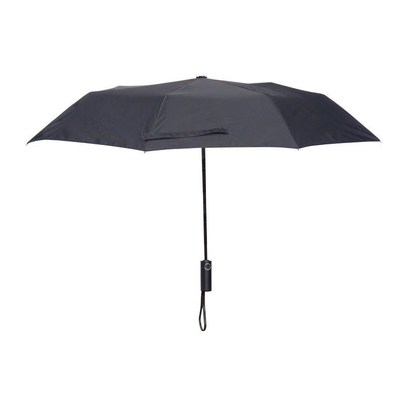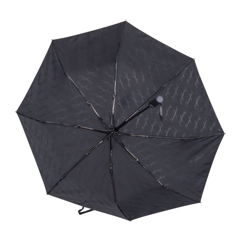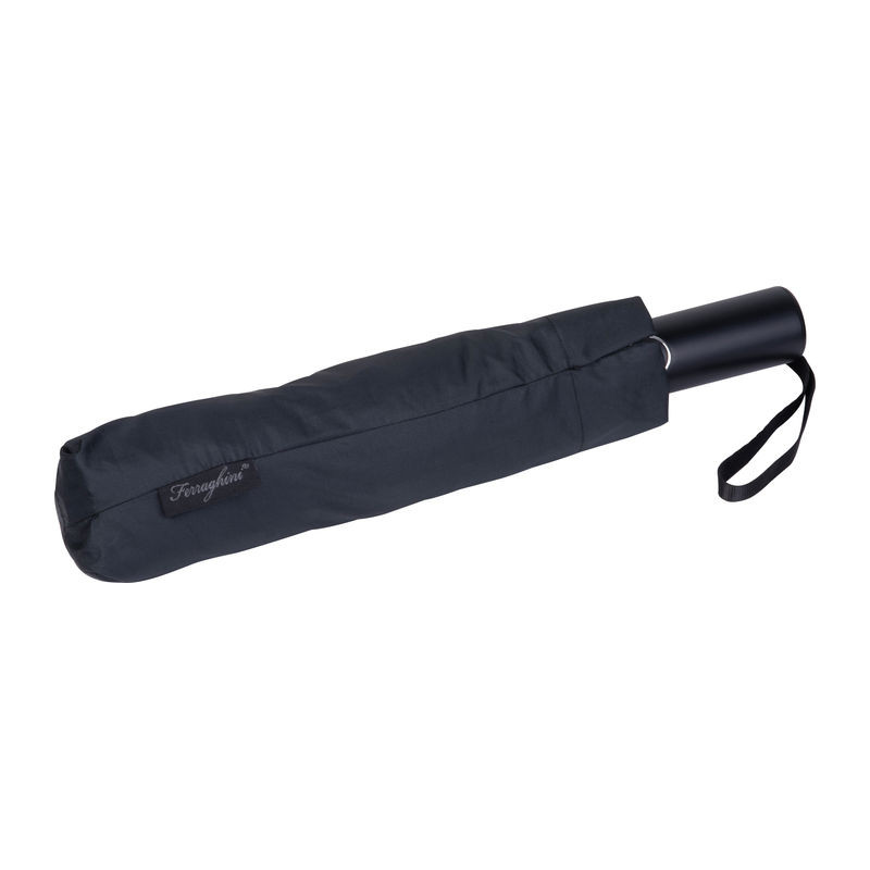Ferraghini viharálló automata nyitható és összecsukható esernyő üvegszálas vázzal, 260T poliészter pongee anyagból. Fogantyú puha gumi bevonattal, gravírozott „F” a fogantyú alján.
