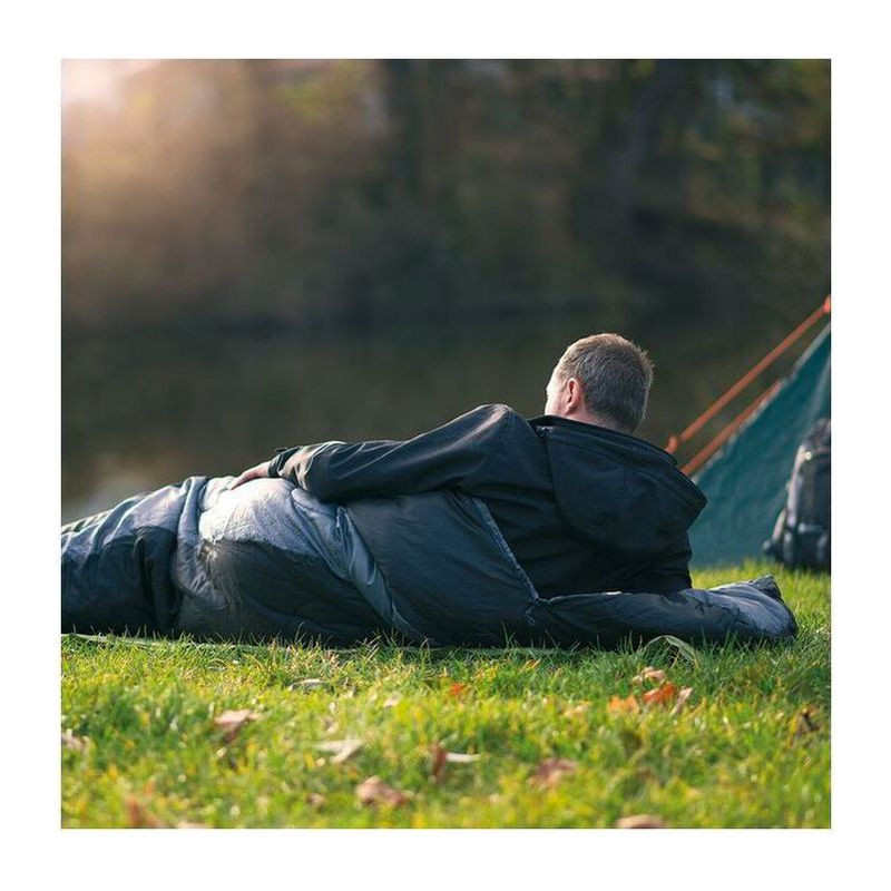 Puha és könnyű SCHWARZWOLF múmia hálózsák. 190T poliészterből, 250g/m2 - 210T mikroszálas töltelékkel, kapucnija zsinórral behúzható. Komfort zóna: 11°C, extrém zóna -7°C. Súlya 1,32kg.