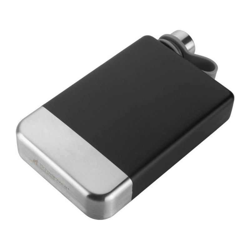 Schwarzwolf laposüveg 0,266 l-es űrtartalommal, fekete és ezüst kombinációban. A Schwarzwolf logó a flaska alján található. Schwarzwolf díszdobozba van csomagolva.