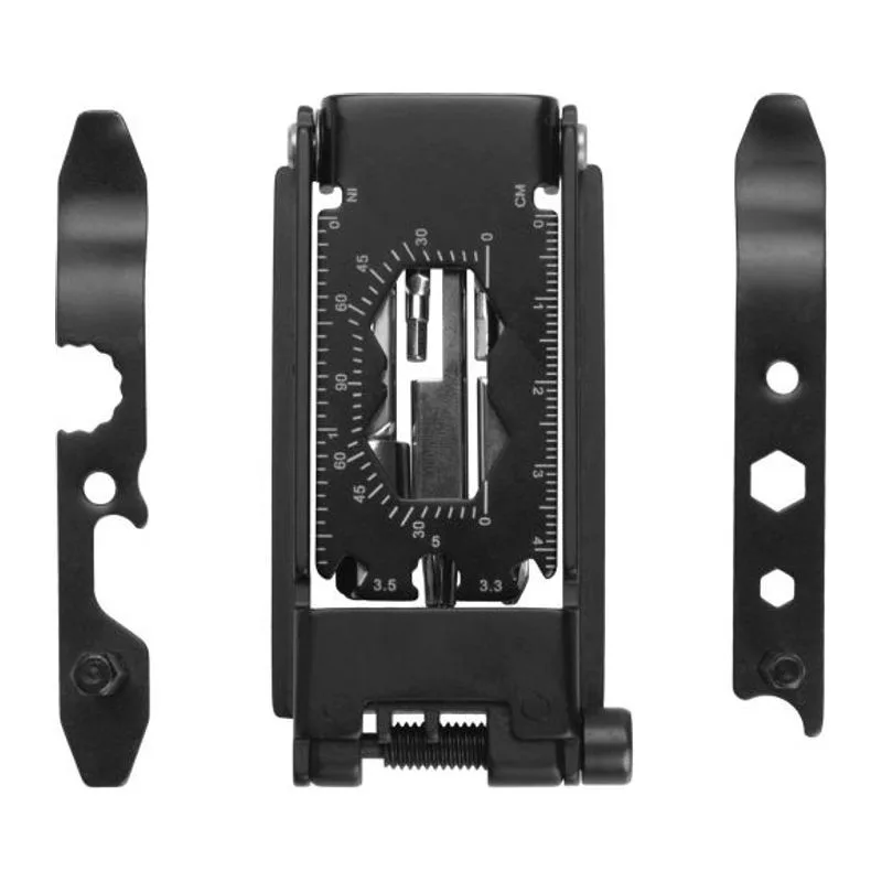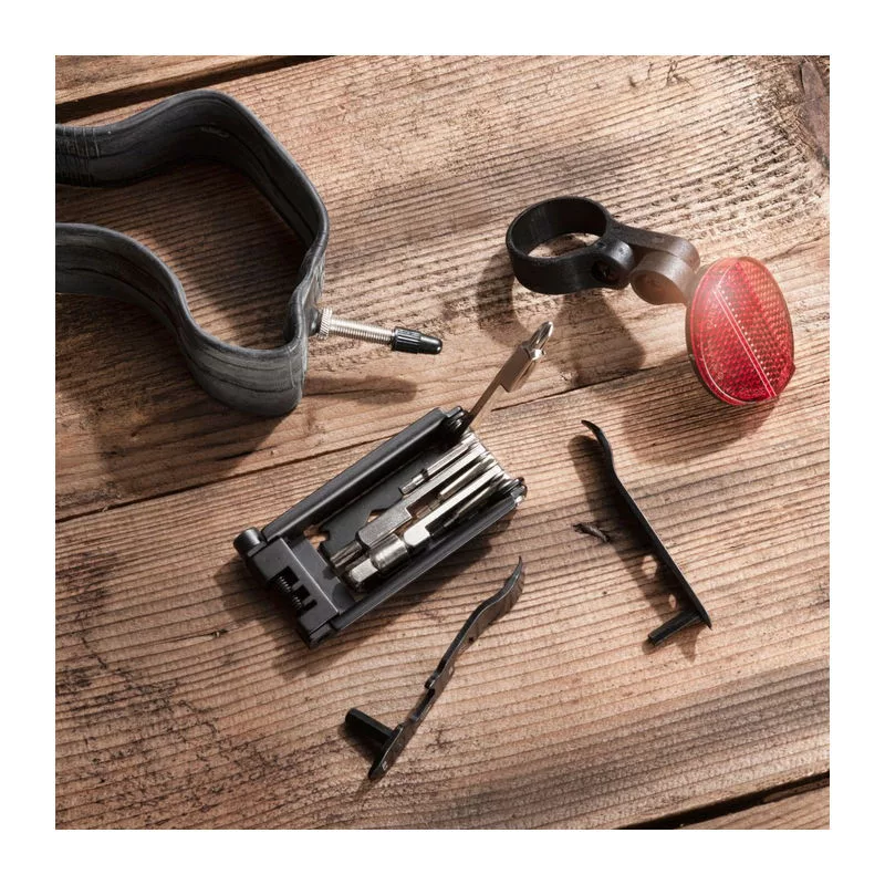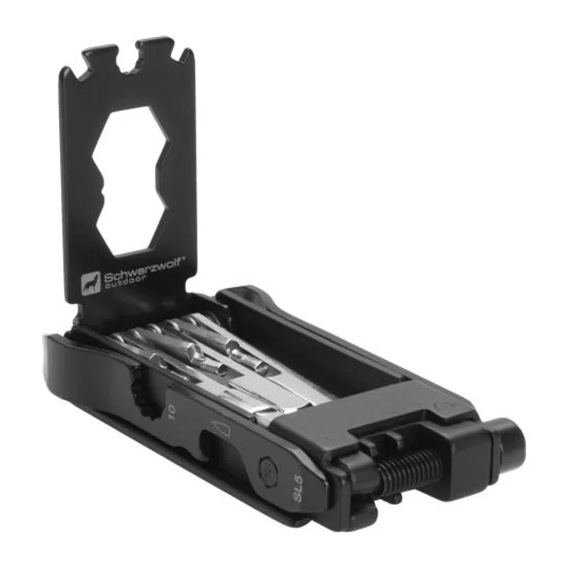 22 funkció Schwarzwolf szerszám bicikliseknek: torx csavarhúzók (3 méret), sörnyitó, laposfejű és csillagfejű csavarhúzó, 2 gumikar, láncbontó, hatszögkulcs (2 méret), küllőkulcs (2 méret), 2 vonalzó, imbuszkulcs (7 méret). Díszdobozba csomagolva.