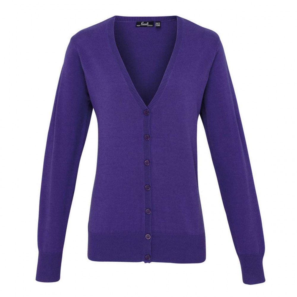 Fabric 55% Cotton 45% Acrylic 12 Gauge Knit Features Cotton rich ladies’ cardigan V-neck styling Seven-button fastening Ribbed knit cuffs and hem Fine gauge knit Easy care