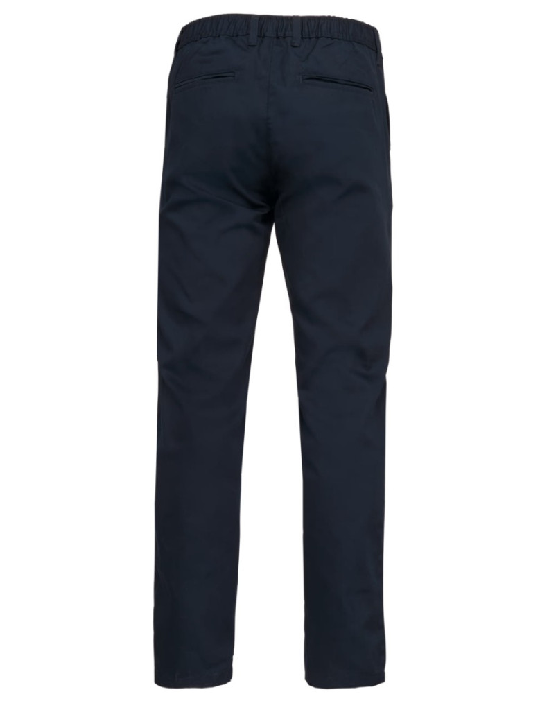 EX KA738 65% polyester/35% cotton Washable at 60°C 2 Italian side pockets including 1coin pocket 2rear piped pockets with reinforced stitching Zip and button fastening Elasticated waist for extra comfort with loops Rear hanging loop inside waist Ideal for daily use