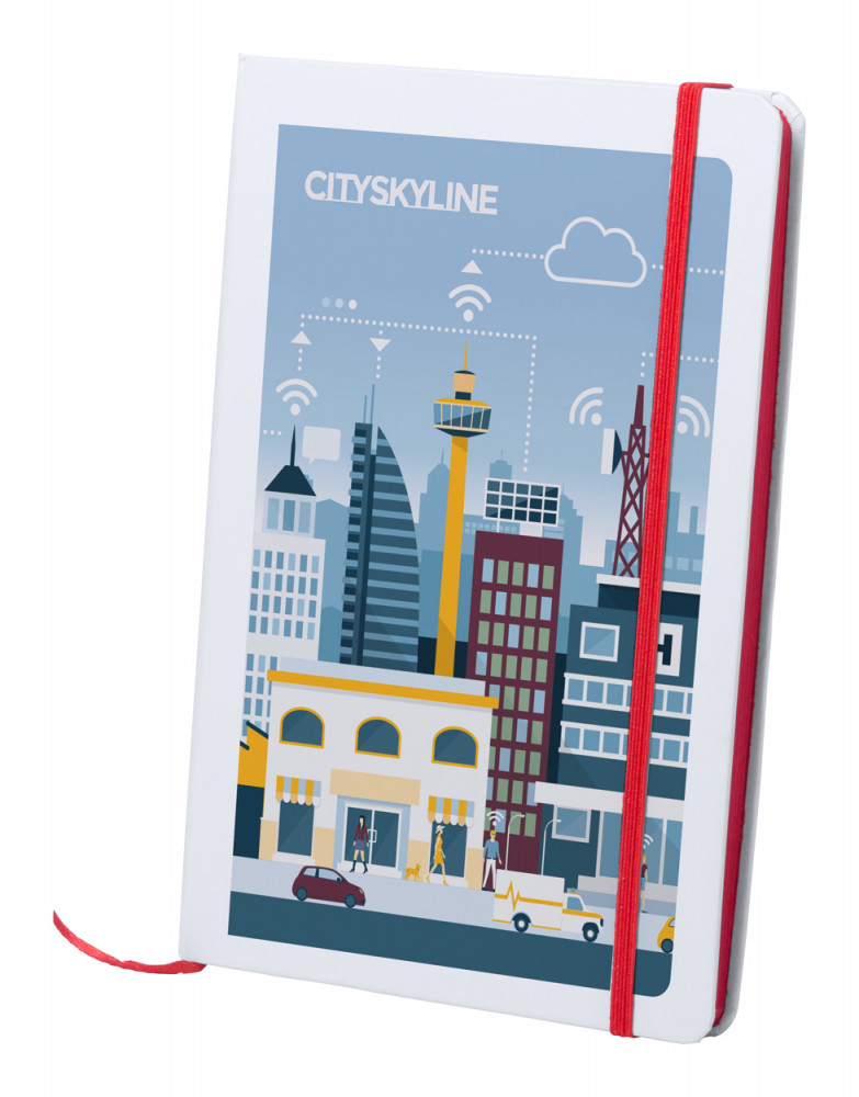 Papír borítású jegyzetfüzet 100 sima lappal, színezett lapélekkel és azonos színű könyvjelzővel és gumipánttal, A5.