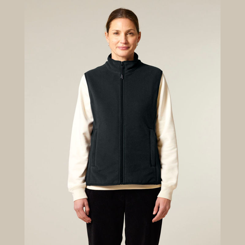Prémium minőségű női ujjatlan polár mellény, amely 100% újrahasznosított poliészterből készült. Kiváló kényelmet és szabad mozgást biztosít, valamint testre szabható az anti-pill bevonatnak és a cipzáras zsebeknek köszönhetően.