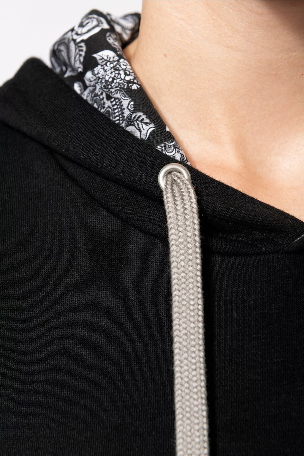 • Nyomott mintás pamut jersey anyaggal bélelt kapucni és kontrasztos húzózsinór