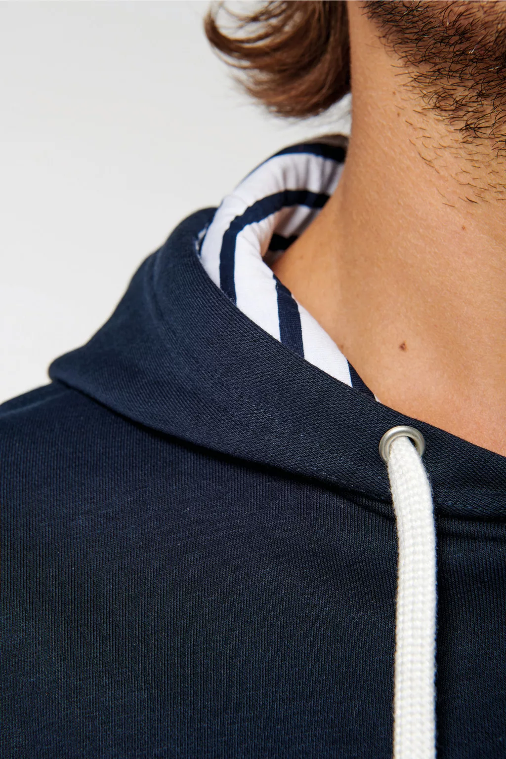 • Nyomott mintás pamut jersey anyaggal bélelt kapucni és kontrasztos húzózsinór