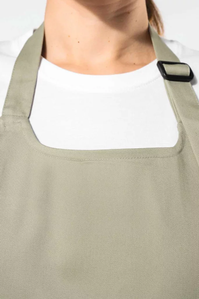 • A nyaknál újrahasznosított műanyag csat a kötény hosszának beállításához