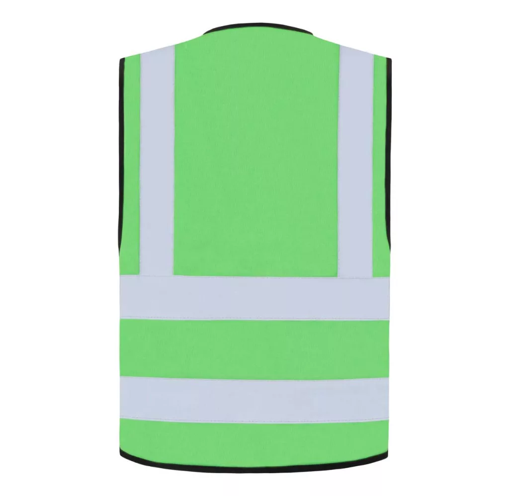 Két fényvisszaverő csík fut a testen körbe, egy-egy pedig a vállakon a kiváló láthatóság érdekében.