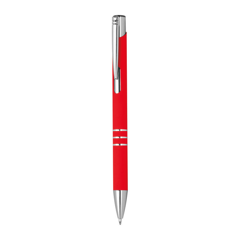 Újrahasznosított alumínium golyóstoll gumírozott felülettel és kék zselés (Semi-Gel) betéttel, 3 díszítő gyűrűvel.