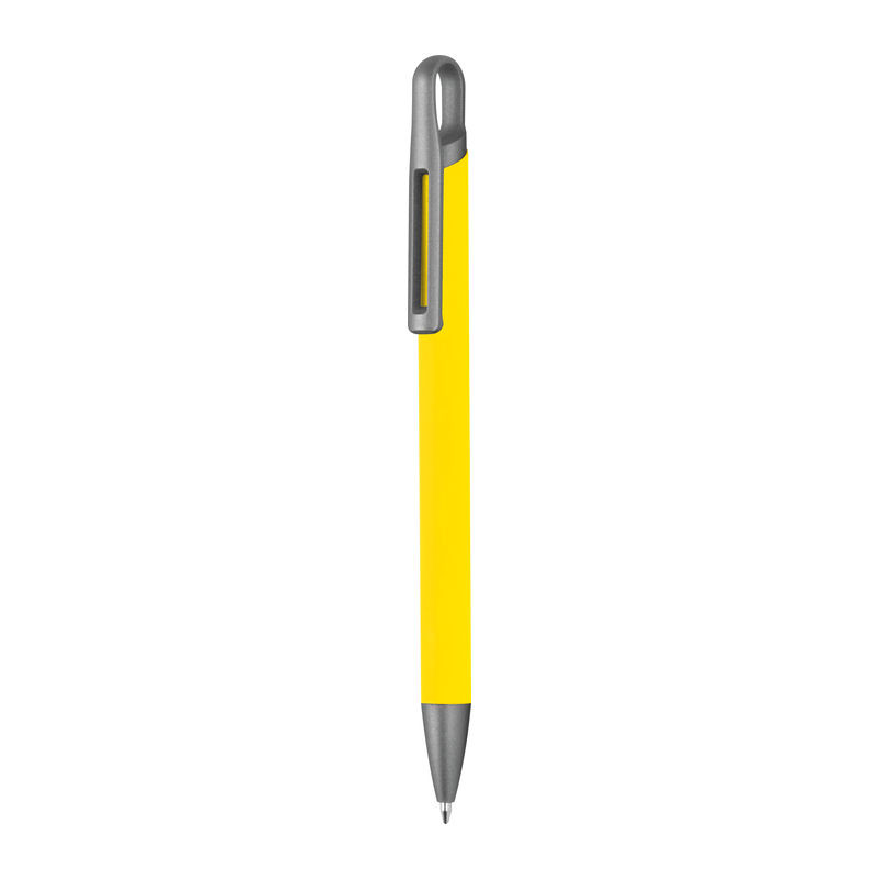 Gumírozott bevonatú, puha tapintású golyóstoll újrahasznosított alumíniumból, kék színű zselés tollbetéttel. Vékony de jól olvasható írást biztosít, 0,5 mm-es vonalvastagsággal.