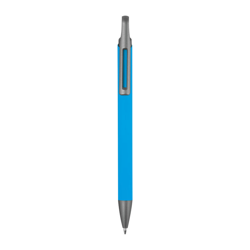 Gumírozott bevonatú, puha tapintású golyóstoll újrahasznosított alumíniumból, kék színű zselés tollbetéttel. Vékony de jól olvasható írást biztosít, 0,5 mm-es vonalvastagsággal.