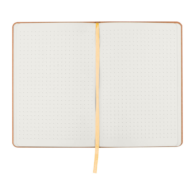 Környezetbarát, A5-ös notesz újrahasznosított karton borítóval, könyvjelzővel, 160 pontozott oldallal (70g / m²) és könyvjelzővel. Tökéletesen használható vázlatok vagy jegyzetek készítéséhez.
