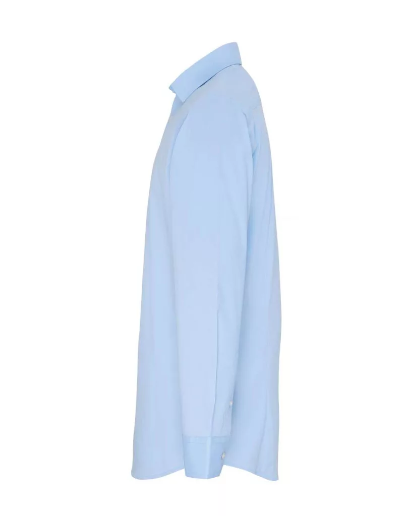 Fabric 97% Cotton. 3% Elastane Poplin 115gsm Features Grown on placket for a seamless look Cut away collar Curved hem Soft feel and stretch fabric Modern fit