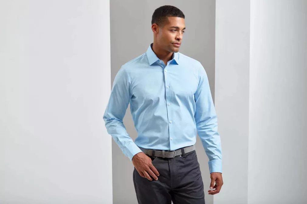 PR244 MEN'S STRETCH-FIT COTTON POPLIN LONG SLEEVE SHIRT