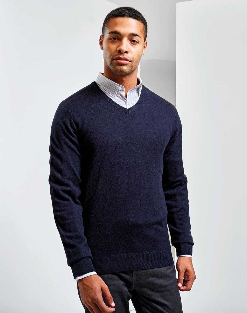 PR400 V nyakú kötött férfi pulóver