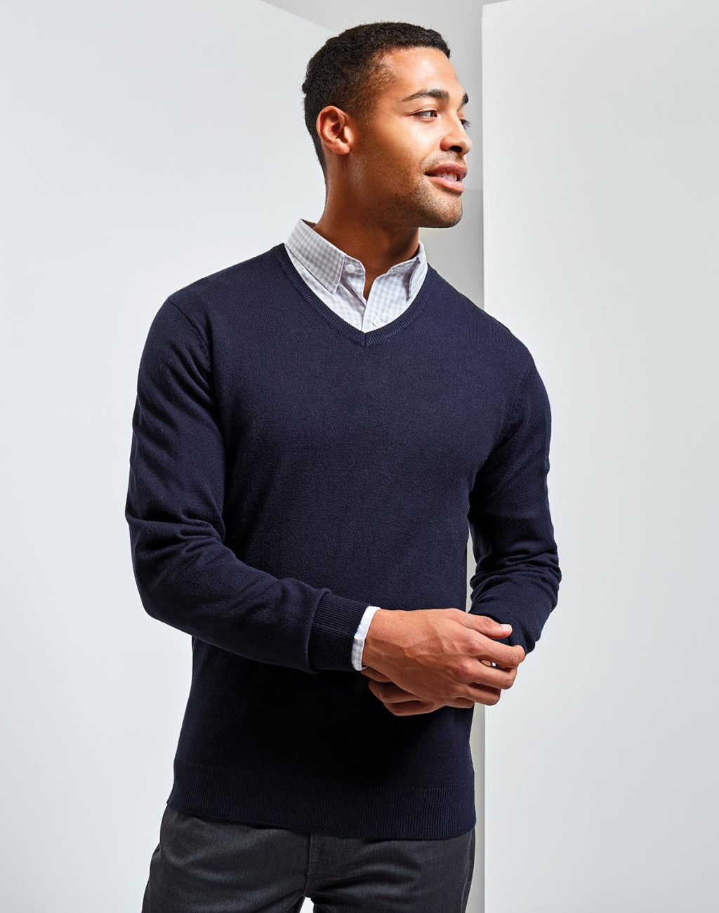 PR400 V nyakú kötött férfi pulóver