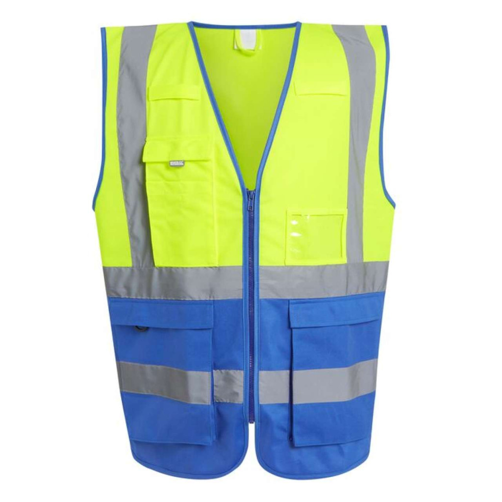 EN ISO 20471:2013 A1:2016 Class 1: Sárga/Tengerészkék, Narancs/Tengerészkék, Sárga/Fekete és Sárga/Királykék