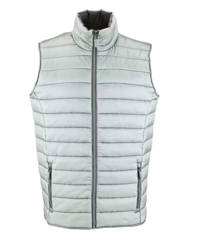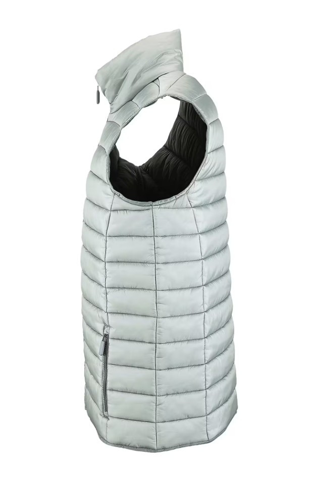 SOL'S WAVE pufi mellény, 180 grammos, vékony anyagból. 2 oldalzseb, színben illeszkedő, divatos húzóval. Állógalléros fazon, testhez álló, vizlepergető anyagból. Emblémázható.