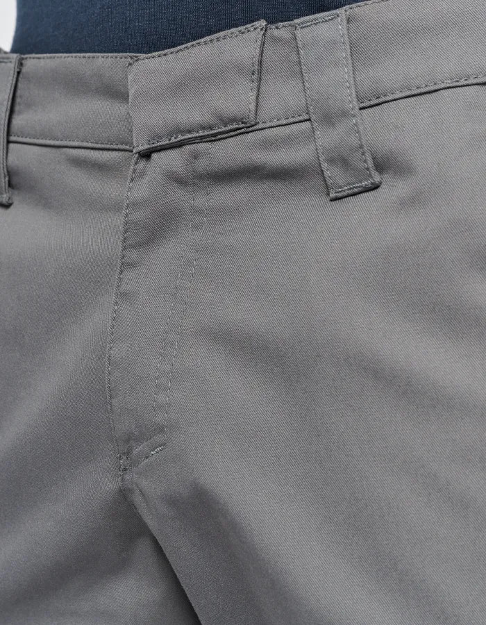EX KA763 65% polyester / 35% cotton. Zip fastening with 1 button. Elasticated waist for extra comfort. 3 front and back pockets and 1 side pocket with invisible press studs. Industrial washing at 60°C. Domestic washing at 40°C.
